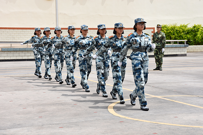 基本的隊(duì)列表演完畢后,女生方隊(duì)進(jìn)行了《女兵操》表演,鏗鏘亦溫柔,舉手投足間煥發(fā)出勃勃生機(jī),將會(huì)操表演推向了高潮。男生方隊(duì)也毫不遜色,擒敵拳、棍術(shù)更是勢(shì)如霹靂,強(qiáng)健的體魄展現(xiàn)出堅(jiān)定的意志,自律自強(qiáng)的品質(zhì)中綻放出青春的色彩,展現(xiàn)了當(dāng)代軍人的風(fēng)采。
